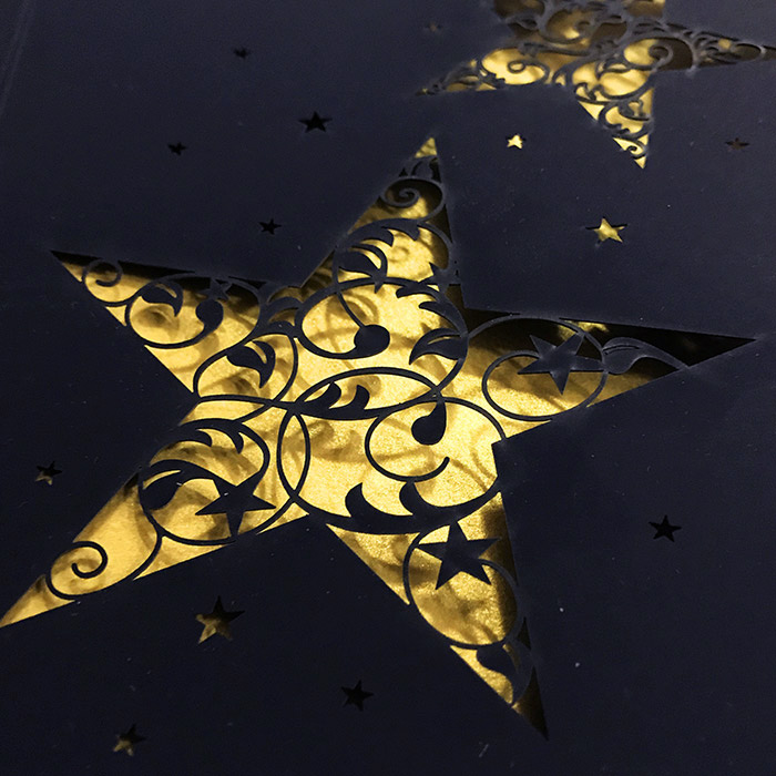 Jūsų įmonės logotipas bus išpjautas lazeriu atviruko viršelyje, kiaurapjūvyje atsidengs vidinio lapelio spalva.